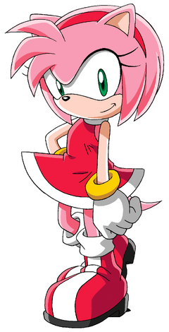 Amy the Hedgehog (エミー・ザ・ヘッジホッグ, Emī za Hejjihoggu), born as Amy Rose (エミー・ローズ, Emī Rōzu), and formerly known as Rosy the Rascal (ロージー・ザ・ラスカル, Rōjī za Rasukaru) is Sonic's self-proclaimed girlfriend who has chased Sonic in love and has a long-term goal is to get Sonic to notice her and been trying to win his heart by any means, including impressing him by fighting robots, threatening to keep him locked in prison, and even forcing him.