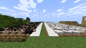 The Great Sheep Massacre occured on July 27, 2025 in which 600+ sheep were murdered. Those involved in this massacre were AM7999, beancans, hexQJ, and ashley143. The sheep were divided by race in their pens shown to the right and slaughtered... Despite the tragic event that occured, the sheep were used in the making of THE SIGN, one of the main monuments of the server.